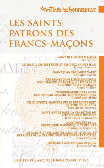 SommaireSE SOUVENIR DE SAINT ALBAN, PREMIER SAINT PATRON DES MAÇONS ET DES FRANCS-MAÇONSThierry ZarconeVénérable Maître de la Loge Nationale de Recherche de la Grande Loge Nationale FrançaiseSAINT BLAISE DES MAÇONSJean VirideHistorien et anthropologueLE SOLEIL, LES SOLSTICES ET FÊTER LES SAINTS PATRONSThierry ZarconeHistorien et anthropologueDirecteur de recherche au CNRSSAINT JEAN ÉLÉÉMOSYNAIRE, PARANGON DE LA FRATERNITÉ ?Christian RozenEssayisteLES SAINTS DANS L’EMBLÉMATIQUE DES “ MAÇONS DE PRATIQUE ” EN FRANCE AU SEUIL DU XVIIIE SIÈCLE”Pierre MollierDirecteur de la bibliothèque du Grand Orient de FranceL’ICONOGRAPHIE DES SAINTS SUR LES TABLEAUX DE LOGE MAÇONNIQUESDominique JardinHistorienLES QUATORZE MARTYRS QUI SE RETROUVÈRENT QUATRE COURONNÉSYves Hivert-MessecaProfesseur honoraire, historien, sociologue et essayisteSAINT ANDRÉ DANS LA TRADITION DU RITE ÉCOSSAIS RECTIFIÉJean-Louis DuquesnoyGrand Prieur d’Honneur et Ancien Grand Maître National du Grand Prieuré Rectifié de FranceSAINT HUGUES ET LA CHEVALERIE MAÇONNIQUE TEMPLIÈREDominique VergnolleHistorien et essayisteLES SAINTS ET SAINTES DANS LA TITULATURE DES LOGES DE LA GRANDE LOGE NATIONALE FRANÇAISE AUJOURD’HUIFranck FrégosiDirecteur de Recherche au CNRSLES SAINTS DES ANCIENS DEVOIRSFrancis DelonGrand Archiviste de la Grande Loge Nationale Française et docteur en études anglophones