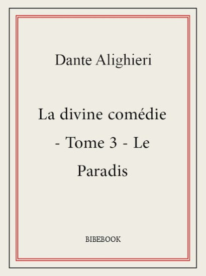 Le troisième et dernier tome de l'épopée de Dante. Béatrice fait passer Dante au Paradis, qui est construit à l'inverse de l'Enfer (neuf cercles concentriques dirigés vers le haut). Ici on croise de nombreux saints. Chaque cercle correspond en fait à un ciel (ciel de la Lune, de Mercure, de Vénus, etc.) dans lequel sont logés les hommes sans péchés selon leur mérite. À la fin du parcours les apôtres du Christ interrogent Dante, qui répond justement à leurs questions, et passe au dixième ciel ou Empyrée. Là Béatrice le quitte et c'est saint Bernard de Clairvaux qui devient le dernier guide de Dante. Il adresse une prière à la Sainte Vierge et finalement Dante s'éteint complètement en Dieu, l'«Amour qui meut le ciel et les étoiles».