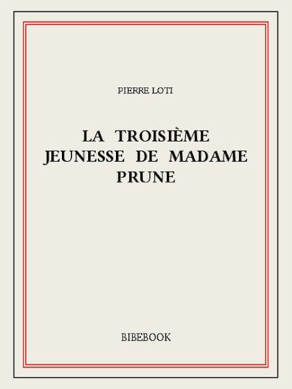 La troisième jeunesse de Madame Prune est le résultat d'une dernière visite au Japon, qui navigue entre carne de voyage et narration. Extrait : Qu’on se dépêche de m’amener ces dames. Je gèle et je m’ennuie, là tout seul, pieds nus sur ces nattes blanches. Un petit vent, rafraîchi à la neige, passe en gémissant entre les panneaux de papier qui servent de murailles . à part ma dînette, posée à terre, et mes coussins de velours noir, rien dans cette vaste chambre, rien qu’un frêle bouquet là-bas, dans un vase, sur un trépied de laque, — un bouquet d’un goût exquis, j’en conviens . mais c’est égal, cette nudité absolue est pour me geler davantage encore. J’ai froid, froid jusqu’à l’âme . je me sens ridicule et pitoyable, accroupi au milieu de la solitude qu’est cette chambre. Vite, qu’on m’amène ces dames, ou je m’en vais !