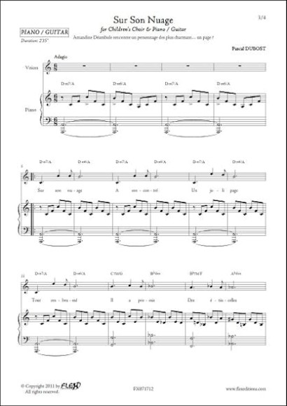 Pour enfants entre 8 et 12 ans. Formation : Chorale d'Enfants, Piano ou Guitare. Instrumentation : Chorale d'Enfants (de 8 à 12 ans), Piano ou Guitare. Niveau de Difficulté : Facile. Durée : 2'35. Style Musical : Classique, Pédagogique. Catégorie : Composition Originale. Compositeur : Dubost Pascal.